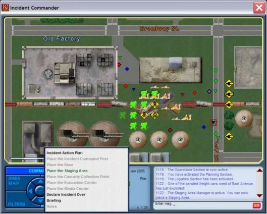 September 7, 2006 Simulating one of the most demanding and mission critical roles available to a human being, Incident Commander is a PC-based simulation that provides a safe environment for first responders, emergency personnel and multi-agency personnel to train, plan, and prepare for emergency and crisis situations. Developed for the U.S. Department of Justice by BreakAway, Incident Commander can train up to 16 players simultaneously, with users assuming roles as either the commander or members of the operations team. The game simulates various crisis scenarios, including a natural disaster, a school hostage situation, and a terrorism incident and can be customised with the addition of new locations, buildings, structures, crisis events, and emergency agencies to more accurately portray local community situations. Screenshots of the software here.