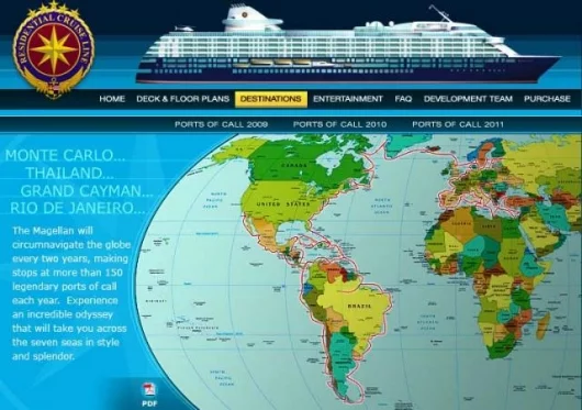 October 20, 2006 We’ve looked at luxury homes on wheels (A, B, C, D, E), relocatable homes that get delivered to the location of your choice (A, B, C, D), mobile homes that float (A, B) and even relocatable homes that hang in the trees (A, B). As the world becomes geographically untethered, we expect the market for taking it with you will just grow and grow. If you love the serendipitous discovery of travel but long for the creature comforts and space of home, the Residential Cruise Ship option might be for you. One of the first such concepts we covered in our first print issue four years ago was the Freedom Ship (A, B) and the first fully-operational residential cruise ship was the Residensea. Now there’s a US$650 million dollar private residential cruise ship project underway named the Magellan.