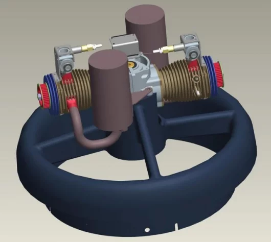 The new RCV technology demonstrator engine to be delivered to Honeywell for evaluation with the MAV will have a nominal capacity of 60cc and is targeted to deliver 4.2bhp at 8200 rev/min. Crucially this performance is based upon the use of JP8 fuel, drawing upon the inherent multiple fuel tolerance, high power to weight ratio and high speed capability of the RCV engine concept.