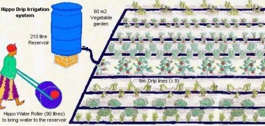 The Hippo roller can also be used in conjunction with an ingenious irrigation system.