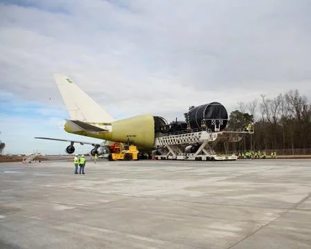 The load consisted of section 43, a forward fuselage section made by Kawasaki Heavy Industries, and section 11/45, the center wheel well and center wing tank made by KHI and Fuji Heavy Industries and joined at FHI. The Dreamlifter left Nagoya, Japan, on Friday. It successfully performed some required flight testing in Seattle over the weekend, and headed to Charleston late Sunday. The parts were unloaded yesterday.