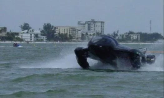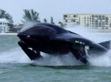 “Assuming AWACS or JSTARS battle-theater control, with satellite downlink, then a cruise missile attack on the SeaPhantom system will fail,” believes Gorman. “The SeaPhantom simply vectors away at 150 knots from sub-sonic missiles. Air-to-surface, ship-to-ship attacks fail against the SeaPhantom as well, as its inherently low radar signature foils targeting systems. You cannot kill what you cannot target. Very high speed and extreme maneuverability due to the craft's bank turn system foil manually targeted attempts. Ultra-high survival probabilities are apparent. It’s still early days, but the operational design objectives include the elimination of active aeronautical control surfaces to simplify pilot duty. Basically, the craft's built-in stability systems - including automated computer controlled gyroscopic feedback- means the craft may be operated by anyone familiar with high performance offshore powerboat operation.