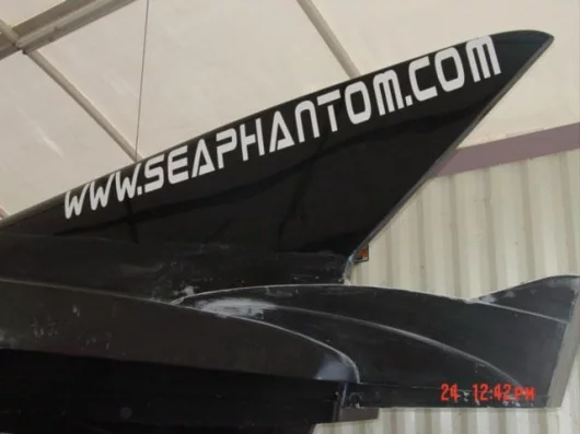 February 14, 2007 As a leap forward in the capability of watercraft, the SeaPhantom is landmark. The company’s catchcry “Helicopter speed, powerboat price” explains how effective it is, but the devil is in the detail and this toy is a combination of several technologies, each of them adding a significant dimension to the capabilities. At low speeds, it’s just like a boat, then as it transitions to medium speeds, it lifts out of the water on proprietary shock dampened 'foils' which are outboard on each side and are the marine equivalent of a desert race car suspension – long travel and capable of withstanding massive impacts. This is a very serious suspension system with non-corrosive fiberglass leaf springs and billet-aluminum airbags tested to 60,000 pounds for dampening the wave impacts. At these speeds SeaPhantom is like a trike with two wheels (the foils) at the front and one driving wheel – in this case a 625hp Ilmor V-10 running through a propulsion system adapted from an offshore race boat. Once there’s clear water in front of it, tweak the speed and the lifting-body airfoil design picks it off the water in ground effect, radically reducing hydrodynamic drag. Without all that resistance of the water to contend with, the SeaPhantom can rocket along at 120 mph using just a fraction of the V-10’s 625 horsepower with radically-improved fuel consumption.