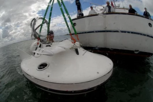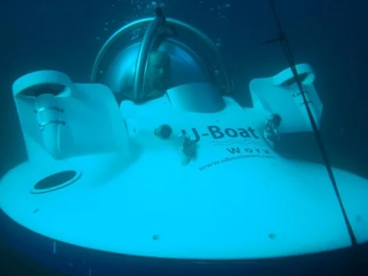 March 2, 2007 Yet another affordable and very compelling new water vessel has reached market. With a price in the region of an expensive sports car, the appropriately named Dutch company Uboatworx has begun producing the first affordable recreational submarine (U-Boat). Uboatworx currently builds a single seat version known as the C-Quester I with a two-seater due in June. Both C-Questers have a top speed of 3.5 mph, are safe to a depth of 50 metres and offer a dive time of 150 minutes. At just over 9 feet long, 6 feet tall and wide and weighing 1.1 tons, the submarine is small enough to trailer to the nearest boat ramp or launch from a yacht. Entry is jet fighter style through a canopy, steering is via a joystick and both the seating position and the experience are apparently quite similar to flight, though getting a license is much cheaper and less time-consuming than a pilot’s license - a three day course and an exam being the only obstacles, apart from the UKP65,000 price tag (more for the two-seater). The cabin is pressurized, a filtration system removes spent air, oxygen is added to maintain air quality and all the safety boxes appear ticked, so the C-Quester appears an out-of-the-box winner at such an affordable price. Motive force is supplied by three electric motors – so it’s a genuine plug-in electric boat which just happens to be able to operate below the surface too.