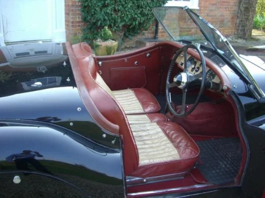 The Roadster had a very light weight canvas top and removable side curtains screwed to the doors, which had no external handle - to open them you reached through the screen to pull a cord on the inside. The DHC or Drop Head Coupe had a padded top and roll up windows. Both the FHC and DHC had an elegant wood veneer dash, whereas the roadster's was leather. All models were manufactured with spats to cover the back wheel arch which enhanced the streamlined look, but when optional (from 1951) wire wheels were fitted, the spats had to be removed to make room for the hub spinners.