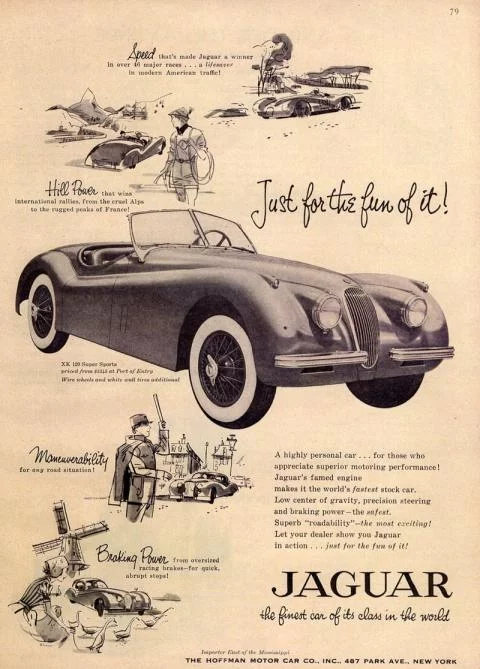 The Jaguar XK120 was manufactured between 1949 and 1954. It was the first post-war sports car from the marque, succeeding the SS100 which ended production in 1940 with the start of WW2. The XK120 was launched at the 1948 London Motor Show as a test bed and show vehicle to highlight the new Jaguar XK engine.