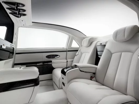 The all white – from the wheels to front white indicators and the seychelles white leather appointed interior - luxury Maybach Landaulet is powered by the uprated, twin-turbocharged V12 engine that develops a maximum output of 450 kW/612 hp from a displacement of 5980 cubic centimetres. This is continuously available between 4800 and 5100 rpm, and the engine also delivers an impressive maximum torque of 1000 newton metres between 2000 and 4000 rpm.