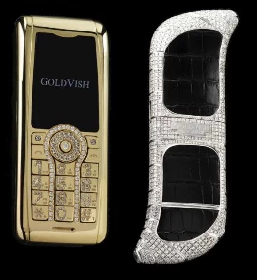 The GoldVish collection is world class – both in jewelry and communications design. Each GoldVish cell phone is equipped with the latest in mobile technology (quad-band for effortless worldwide reception, a camera and MP3 player, along with other features and upgradeable software) The cell phones are hand-made in Switzerland, the home of ''haute horlogerie''.