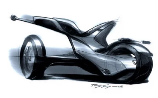 There are brilliant ideas everywhere you look throughout the Hermes design. Honda is unfortunetaly NOT developing the unique hydrogen powered concept by Swedish designer Tommy Forsgren that sees the rider positioned face down and head first supported by the chest on a "seat" atop the vehicle's frame. Forsgren developed the concept as a student and used the Honda logo as he saw the Japanese manufacturer as the most likely to manufacture the machine.