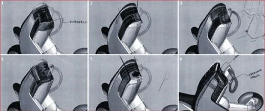 As speed increases the rider is shifted to a more horizontal posture and cornering is achieved intuitively, leaning left or right with knuckles outstretched over the road. The steering is related to the BMW StreetCarver skateboard and Fosgren points to this and other examples of bleeding-edge design as inspiration for his work at the Toyfon.com site.In this case the dynamic motion through acceleration and turns is powered by a hydraulic system linked to a CPU.