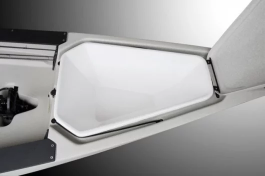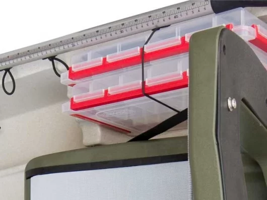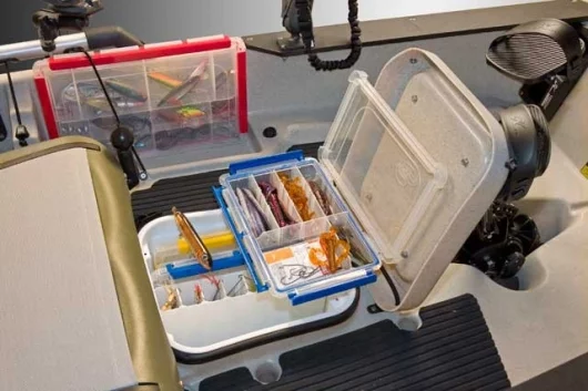 What impressed me most though, was the carrying capacity and breadth of fishing-friendly features - protected horizontal storage for up to six rods and two additional vertical rod holders., space for 13 Plano tackle boxes, three in-hull storage compartments, plus an additional large on-deck storage area for an optional livewell or cooler.