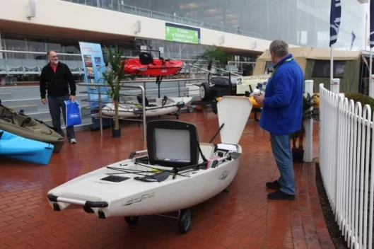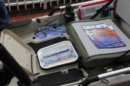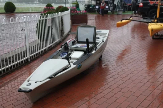 Firstly, the boat is not based on any of the existing Hobie platforms – it is purpose built just for fishing. It shares the same lightweight yet very hardy construction of all the Hobie kayaks, which means it’s a fishing boat you can strap on the roof of a car. Weighing in fully rigged, the Pro Angler tips the scales at just 138 lbs (62.6 kg) so it’s probably lighter than another passenger in the car, and won’t pose too many problems lifting it onto the roofrack.