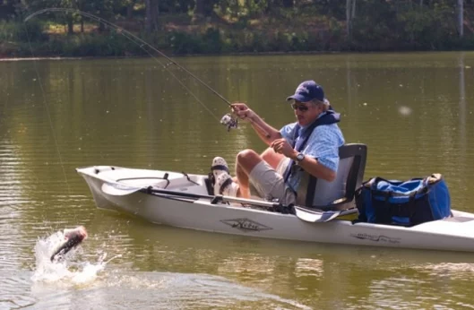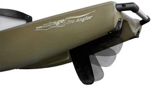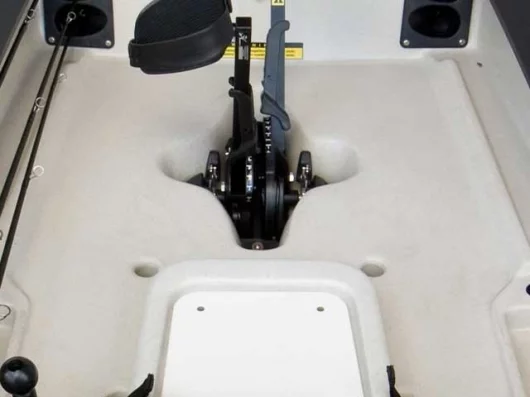 With the quickly retractable rudder and quick-remove MirageDrive, the Pro Angler can go anywhere, very quickly and very quietly. If you’ve never seen the MirageDrive, take a look at this video on the Hobie site. The MirageDrive is so efficient that it makes kayaking and fishing far more accessible to less active people – a very gentle pedaling motion gets you moving at a fair clip, so you can cover long distances without inducing a coronary. It allows you to pedal with your legs rather than paddle (with your arms) your kayak, and if you want to share the workload, you can do both. Just using legs alone though, you’ll easily outpace a far fitter and stronger paddler in the same rig – we’ve tried comparisons a few times and the contrast in speed is stark.