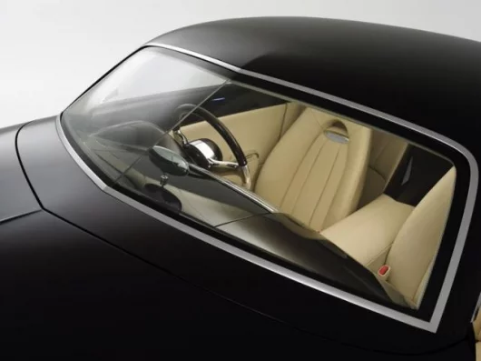 A proximity sensor opens the door automatically as the driver approaches, revealing deep cream leather twin tombstone-shaped seats equipped with integral belts.