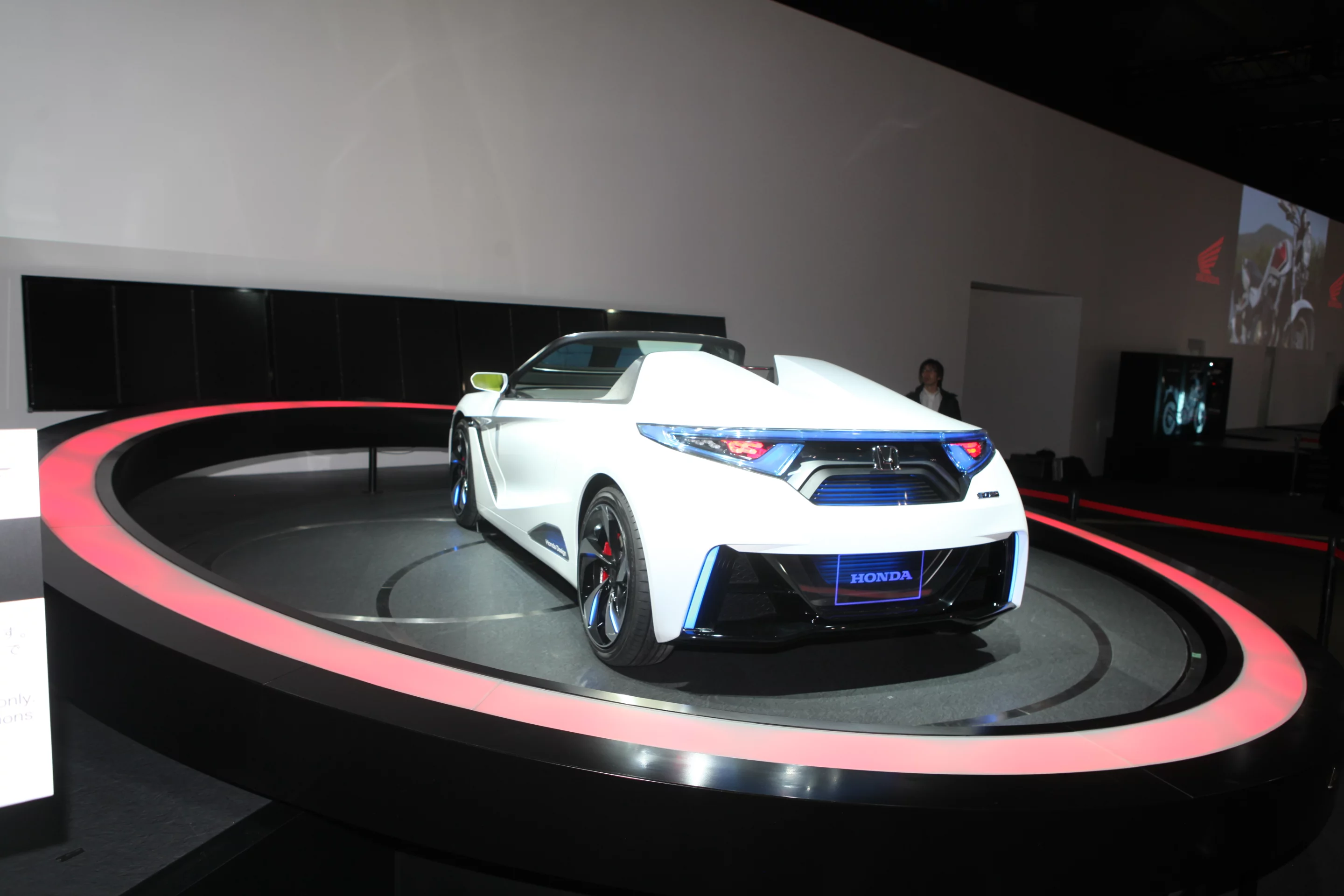 More from the 2011 Tokyo Motor Show, where Honda today unveiled the two-seater EV-STER, which it describes as the "next-generation electric small sports concept". Honda says that its lightweight frame made of "carbon materials" grants a range of approximately 160 km (99 miles) while simultaneously improving performance. Honda very much emphasizes the EV-STER's driving experience, citing the ability to customize motor output and suspension settings, as well as its twin-lever control instead of a steering wheel.