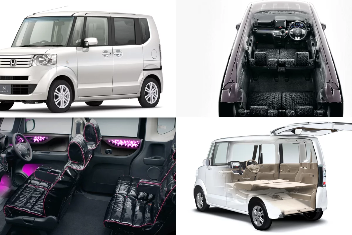 Honda's N Box has a length of 3.395 m, a width of 1.475 m and a height of 1.77 meters, and just about all of that three dimensional space is available as cabin space.The third goal was to make the automobile as safe and secure as possible, allowing The FLASH BOX features a special body color, reflective decal sheets and LEDs used as a decorative element in both the exterior and interior designs. The Freed Wa is based on the Freed Hybrid compact minivan, and the Japanese word wa refers to traditional Japanese culture. Its exterior features the ancient Japanese art of lacquering, while flowers representing the four seasons are the theme of the interior design.