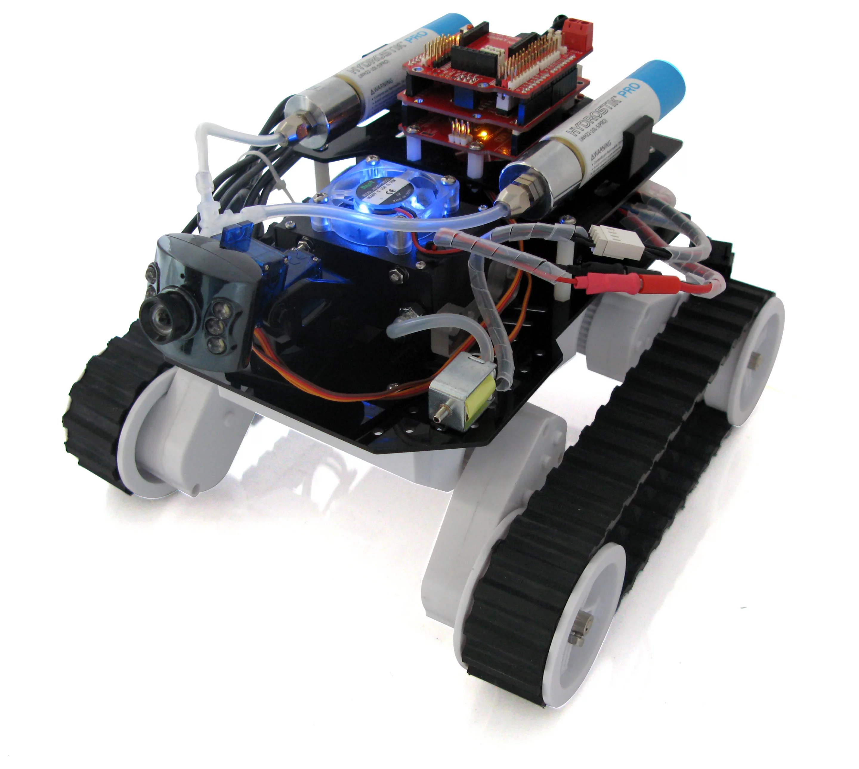 The hybrid system results in a claimed run time of about one hour per fill, although Wankewycz noted that additional HYDROSTIKs can be added for longer runs. The platform is also designed to receive user-supplied add-ons such as robot arms or sensors, making it even more Mars rover-like.