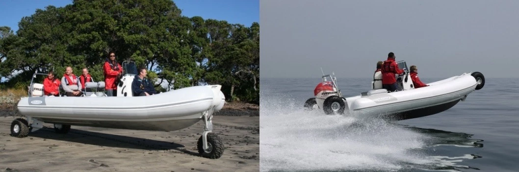 The concept (which is subject to a world-wide patent) is based upon the integration of a caterpillar system within the hull without affecting its aesthetics, performance, or its seaworthiness.