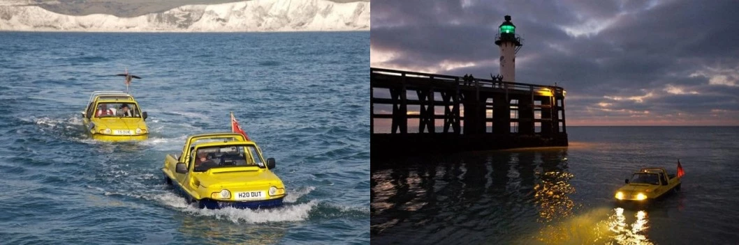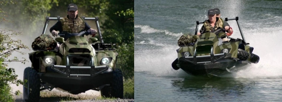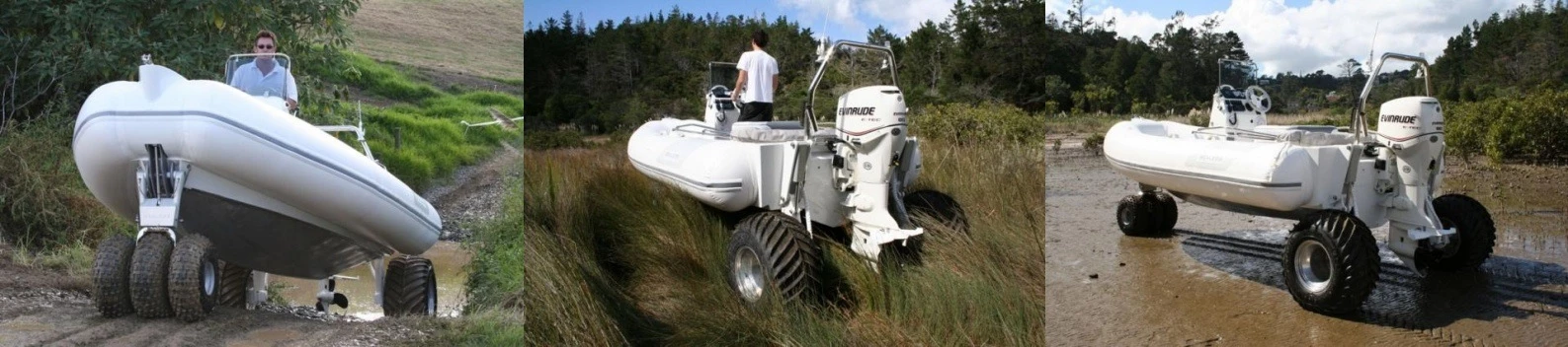 What makes the Iguana most different from the current crop of amphibians, is that it was conceived to handle almost any condition, having been inspired by the difficulties of the boat owners in the town of Antoine Brugidou, between the bay of Mont St Michel and the south of Jersey, where the tide can go out for miles and where one has to navigate between sandbanks, rocks and currents. Hence the Iguana has more genuine off-road capabilities than most of its competitors and an armchair ride for the boat's occupants.