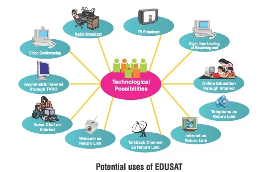 Satellites can establish connectivity between urban educational institutions and a large number of rural and semi-urban educational institutions to provide an educational infrastructure.