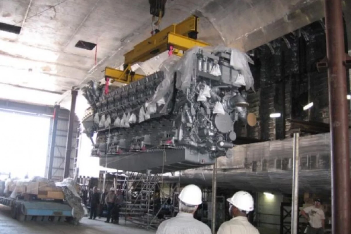 The installation of all four engines was completed within three weeks, ahead of schedule, in what was a first for the Austal USA shipyard given the size and weight of the engines. Also under construction in the yard is the 127 metre trimaran Littoral Combat Ship for the United States Navy.