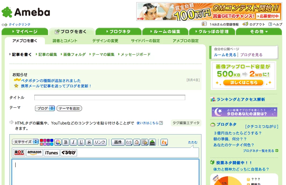 In the English speaking world, the free blogging platforms that stand out from the crowd are Google's Blogger and Wordpress.com. While those services are also popular in Japan, a particularly strong homegrown contender is Ameba.jp., which is now looking to tap into a global audience by launching as a Facebook app. More than just a blog platform, Ameba is unique in the way it has socialized blogs via a virtual online community, Ameba Pigg. Yes, it's an odd name... But it is Japan after all.