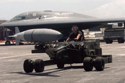 The B-2 Spirit is a multi-role bomber capable of delivering both conventional and nuclear munitions. A dramatic leap forward in technology, the bomber represents a major milestone in the U.S. bomber modernization program. The B-2 brings massive firepower to bear, in a short time, anywhere on the globe through previously impenetrable defenses.