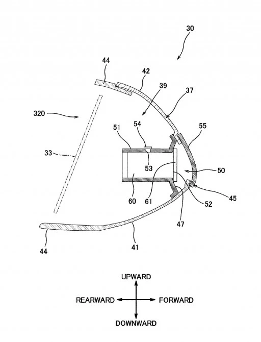 Kawasaki is, for instance, incorporating a tilt sensor to correct images in relation to the bike's lean and Bluetooth capabilitites into its design, and in the patent its designer, Akira Nakaya, says: “The display device may be constructed of a helmet mount display. In this case, the night vision system is equipped with a short-distance radio device according to a specification, for example Bluetooth to receive and send information between the CPU on the vehicle body side and the display device on the helmet side. Likewise, the alarm sound emitting device may be provided on the helmet side. By providing the display device and the alarm sound emitting device on the helmet side, a size of the front part of the vehicle body does not increase or a structure of the front part of the vehicle body does not become complicated.”