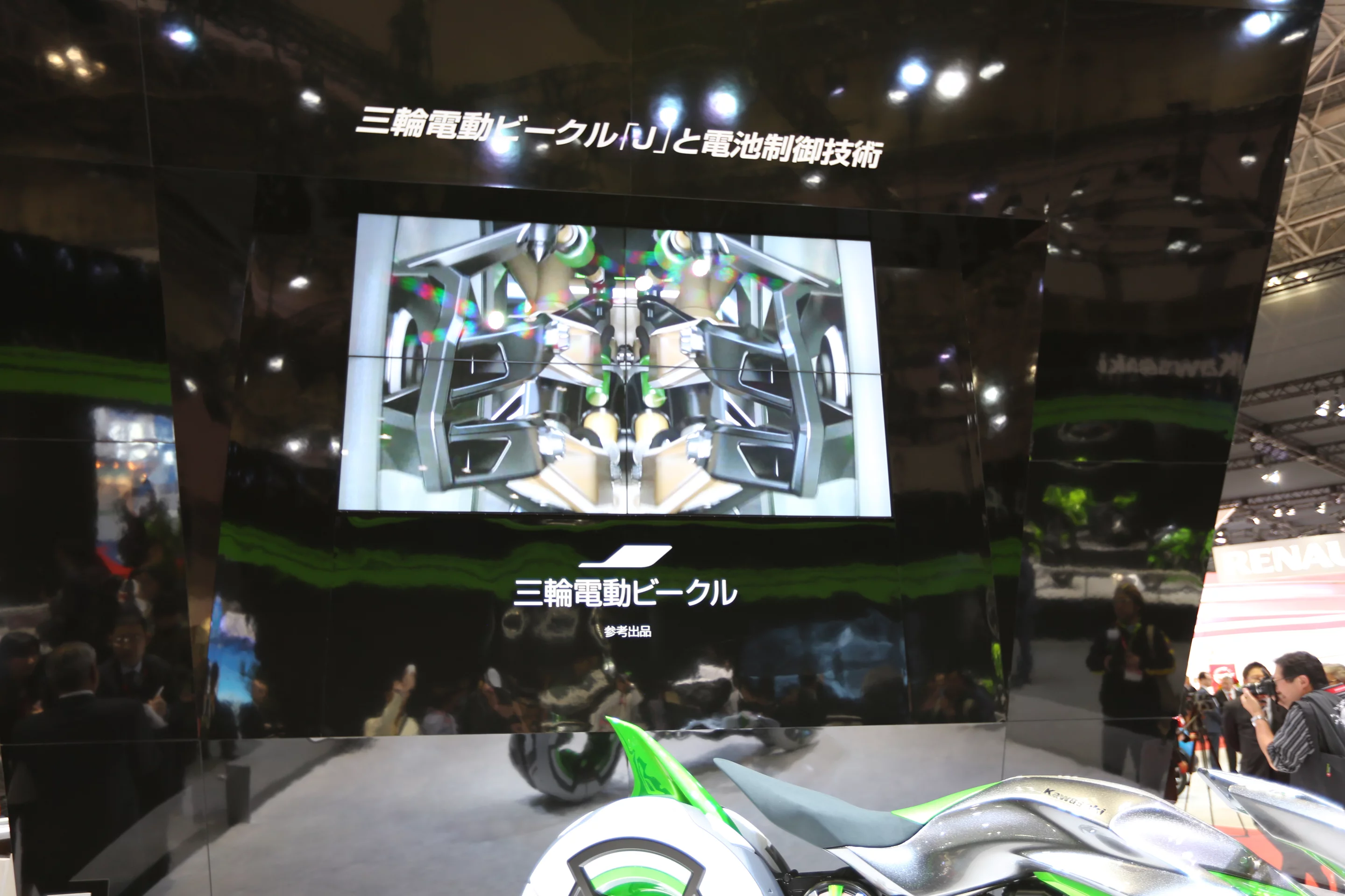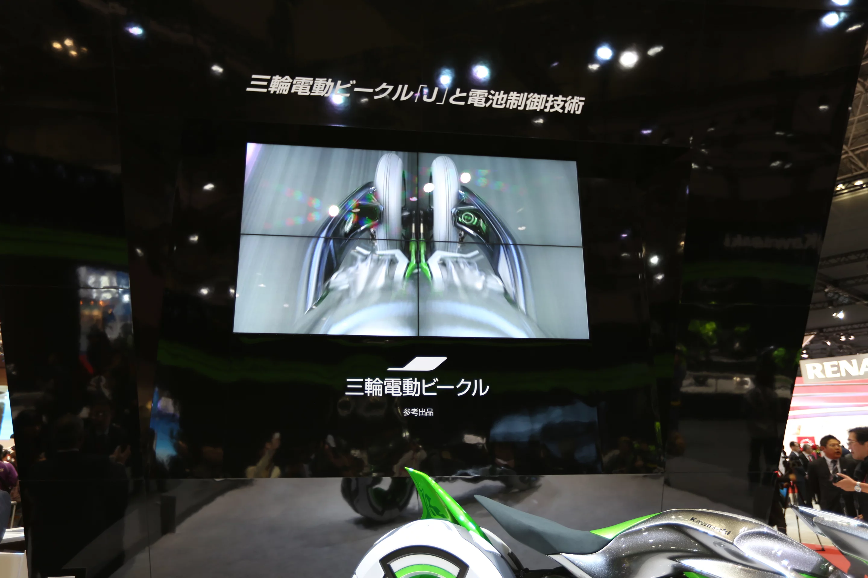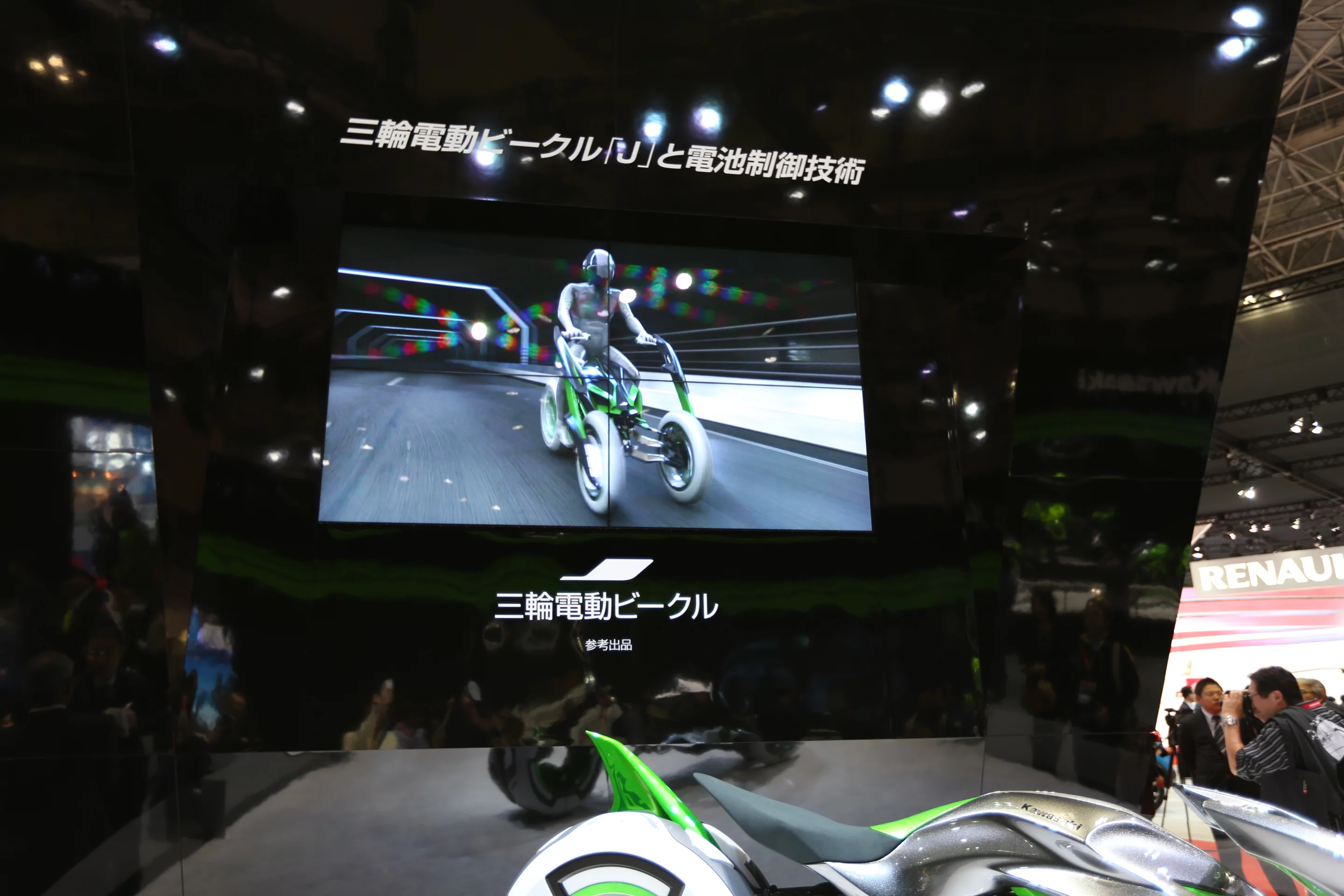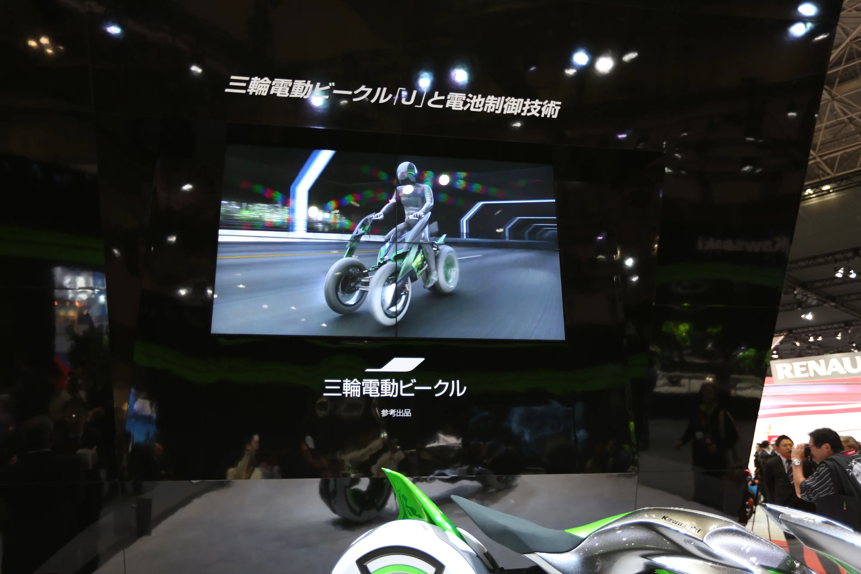 Details of the all-electric vehicle's drive-train are scant, but Kawasaki says the J concept makes use of its proprietary battery management technology and GIGACELL high-capacity nickel-metal hydride battery.
