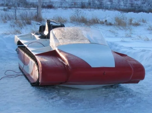 FastTrack 1 uses elongated rubber snow mobile tracks and is currently powered by a 148 horsepower snowmobile engine. A 350 horsepower Chevrolet Corvette engine and a hybrid drive train are ready for installation in the Fast Track for a run at the world water speed record for amphibious vehicles later this year.