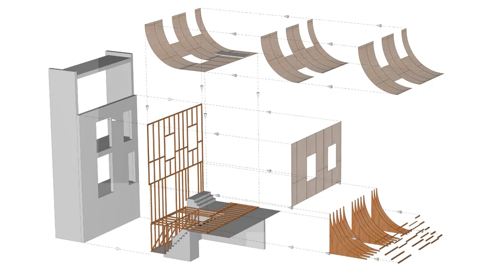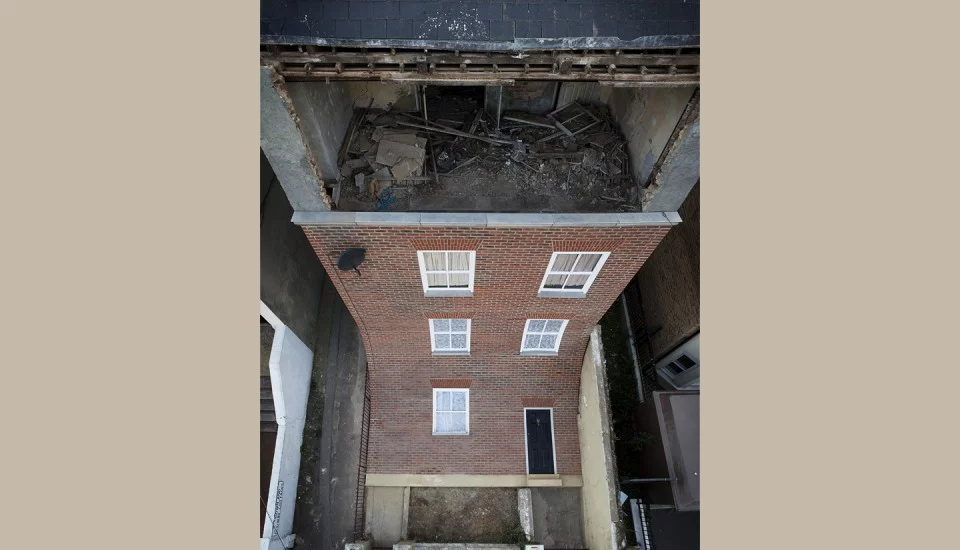 It's not unusual to see a project that straddles the worlds of art and architecture, but this piece by Alex Chinneck, wonderfully titled From the knees of my nose to the belly of my toes, is surely a stand-out. I'm not sure which is the most eye-catching feature of this bizarre refurbishing of a four-story house: the curving brick facade that seems to have slipped down onto the ground, or the gaping cavity exposing the innards of the top floor as the notional result of said slide.