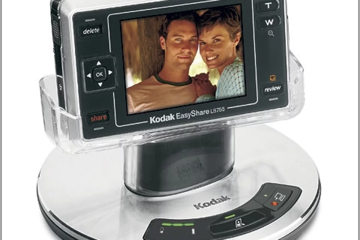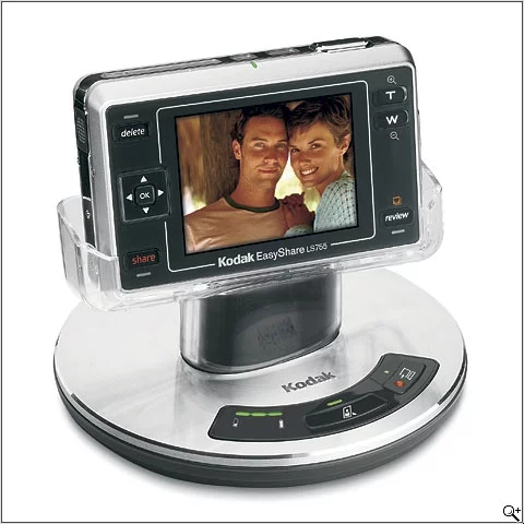 Innovations in on-board viewing include the large 2.5-inch, high-resolution (207,000 pixels) LCD screen which displays pictures in high-detail and provides magnification up to 8X. The LS755 camera also includes Kodak's new on-camera digital photo album feature, which places favourite pictures in easily accesible file for viewing anytime. The included Kodak EasyShare Photo Frame Dock - which provides one-touch picture transfer to a connected computer while keeping the camera's lithium-ion battery charged - can also play customisable photo slideshows on the camera LCD.