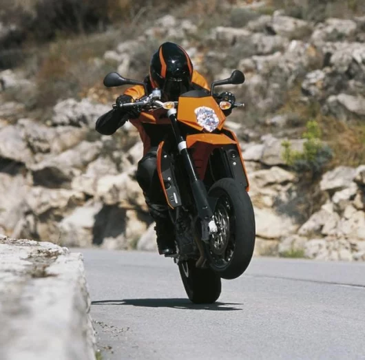 June 25, 2005 The launch of the new KTM 950 SUPERMOTO was one of KTM’s biggest gambles yet. The Austrian marque has been undergoing the transition from niche purveyor of premium off-road competition machinery to fully-fledged motorcycle manufacturer and has its eyes set firmly on the road bike market with a 990 Supersport motorcycle set to spearhead its road machinery charge and successful forays into (125 and soon 250cc) Grand Prix racing set to give it credibility. So why it would choose to release such an oddball motorcycle as the 950cc supermotard to such great fanfare was a complete mystery … until the press rode the bike, which turned out to be a sensation. Our favourite quote on the KTM comes from Two Wheels Only: “The motorcycling equivalent of a man with a 1000 yard stare, a disturbing twitch and an unhealthy interest in firearms ...”