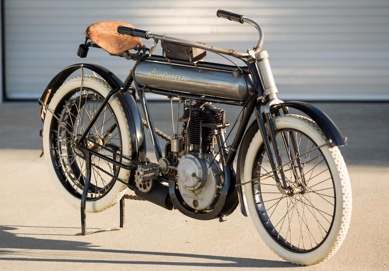 On the singles front, there are some rare and delightful American made singles from a century ago. From top clockwise, a 1910 Royal Pioneer, a 1912 Pope Model H, a 1913 Thor, a Yale 24M, and a 1908 Bradbury Peerless.