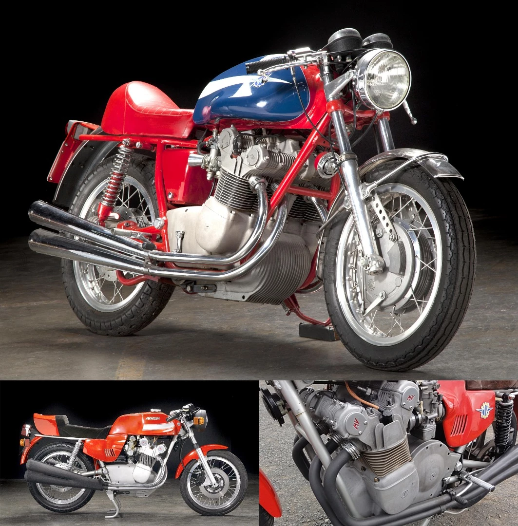 These days the 750S (above top) and its America-styled derivative (bottom left above) are extremely desirable, with the record price for an MV Agusta 750 S of £85,500 ($143,661) achieved by Bonhams in April, 2014.