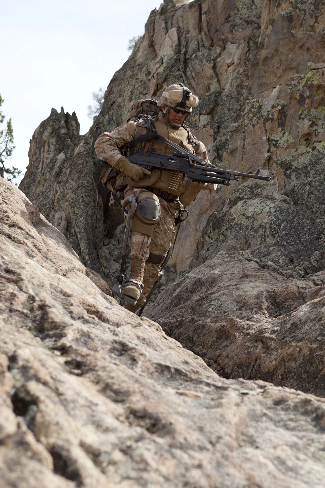 Dismounted Soldiers often carry loads greater than 130 pounds, including electronics and numerous extra batteries needed to operate gear and complete 72+-hour operations in the field. The HULC, equipped with an extended mission power supply with recharge capability, would enable dismounted Soldiers on these missions to carry fewer batteries.