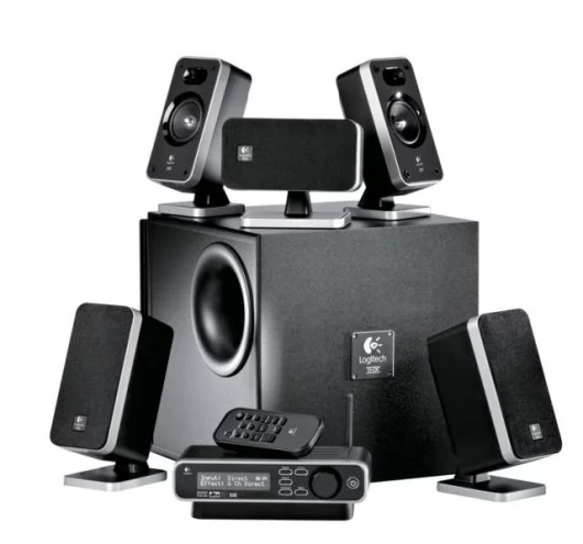 The Logitech Z-5450 Digital system uses digital 2.4 GHz wireless technology, with adaptive frequency hopping, to minimize any chance of interference. Any potential performance problems due to interference are virtually eliminated due to the fact that the system intelligently sends redundant wireless transmissions to each rear satellite; if one data stream is lost, a second identical stream is captured. And the Logitech dual wireless speaker solution has very low latency, less than 20 milliseconds, which is imperceptible to the human ear.
