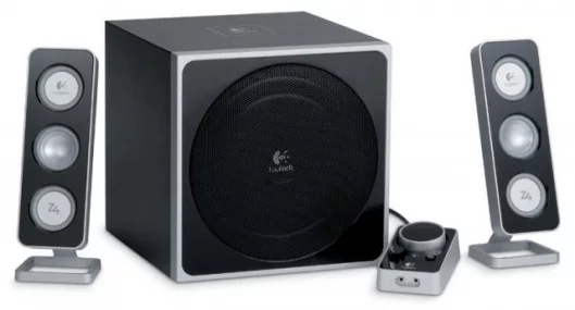 The new 2.1 Logitech Z-4 speakers offer premium sound and a modern design at an affordable price. Each satellite features a sleek new satellite design with three drivers, providing a rich, full-audio experience. The speakers also include Logitech's patented pressure driver subwoofer technology, which delivers powerful, distortion-free bass.