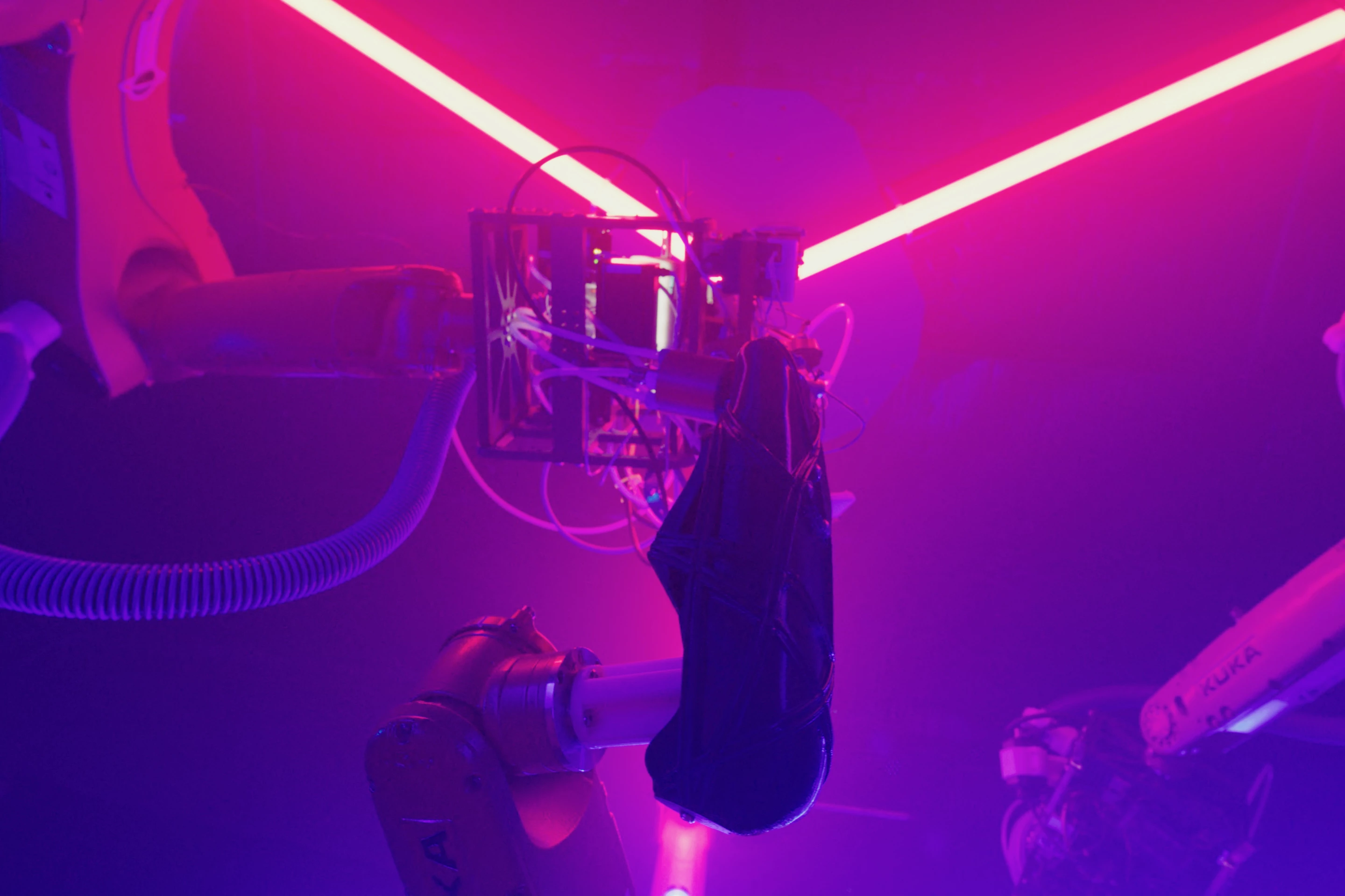 The LoreOne shoes are manufactured via a robotic continuous carbon fiber 3D printing process