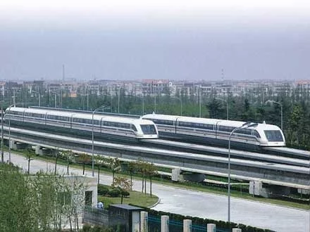The Transrapid in Shanghai has set a new world for commercial railway systems of 501 kmh (311 mph). The maglev (magnetic levitation) train, which has no wheels, axels, engine or transmission, broke the 500 kmh mark on November 12 on the 30 km track between Long Yang Station and Pudong International Airport whilst another vehicle passed at 430 kmh on the adjacent track or "guideway".