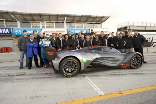 Instead of mimicking racecar components and design elements in a road car – the strategy preferred by supercar manufacturers – the “Mazda way” was to begin this project with the real McCoy: a Courage C65 chassis that earned its stripes during two seasons of LMP-2 endurance racing in the American Le Mans Series (ALMS). This sports car was successfully campaigned under the MAZDASPEED Motorsports Development banner by B-K Motorsports during the 2005 and 2006 seasons. Drivers Jamie Bach, Guy Cosmo, Elliott Forbes-Robinson, and Raphael Matos piloted the car to one victory and a total of nine podium finishes in 15 ALMS events. B-K finished third in championship standings both years; Bach and Cosmo were co-Rookies of the Year in 2005.