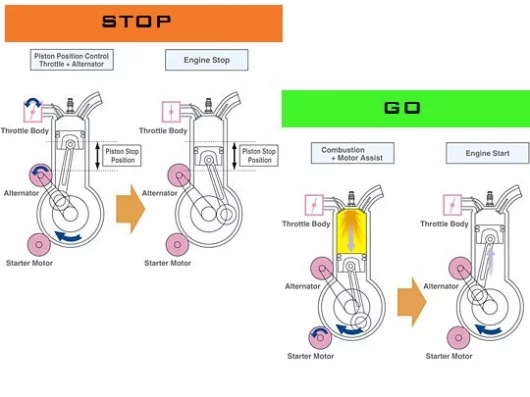 Idling stop systems save fuel by shutting down the engine automatically when the car is stationary, and restarts it when the driver resumes driving.