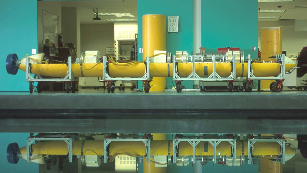AUV’s are robotic, untethered submersibles that are programmed at the surface, then navigate through the water on their own, collecting data as they go. The MBARI AUV can measure physical characteristics of the water, such as temperature, salinity, and dissolved oxygen, detect chlorophyll from microscopic marine algae, and measure concentrations of small particles (or oil droplets) in the water.