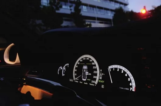 Hybrid status is shown in the instrument cluster