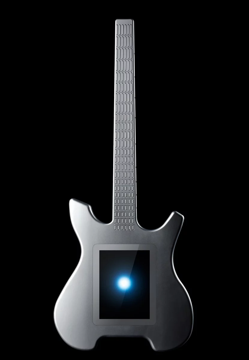 The Kitara (a play on the Greek word Kithara, which is an ancient stringed instrument from the Lyre family) is currently being offered in two flavors, a standard model with a high-density injection-molded ABS polymer body and a limited edition, numbered version machined from a block of aluminum. Both share the same feature set, which includes an 8-inch low latency, multi-touch capacitive touchscreen where the pickups and bridge would be on a traditional guitar, and a full-length fretboard with 24 frets – with 6 buttons at each fret, making 144 individual notes.