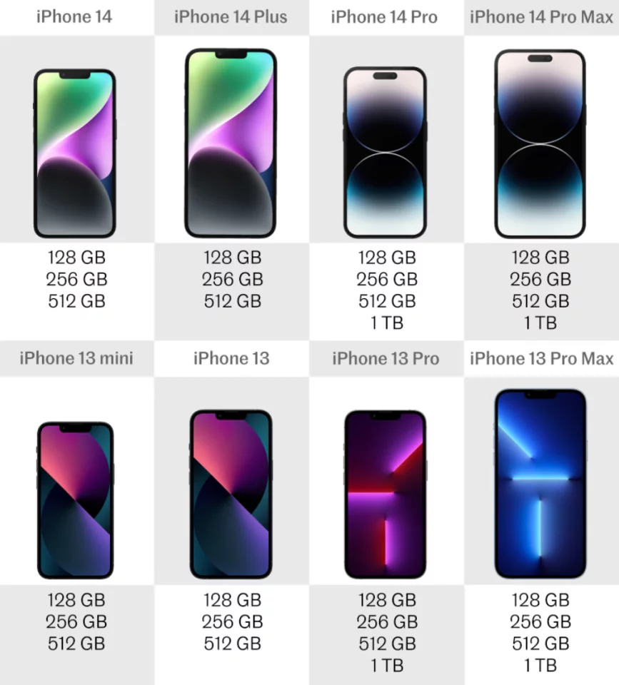 The iPhone 13 lineup was released back in September 2021, while the iPhone 14, 14 Pro and Pro Max came out a year later. The iPhone 14 Plus was held back for October 2022.Price (US$)