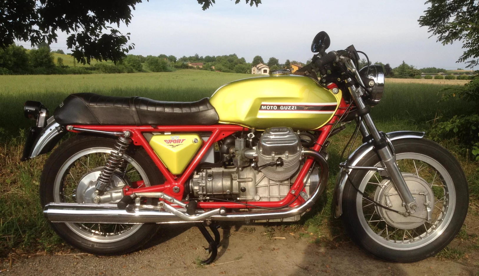Moto Guzzi's 90 degree V8 had water cooling, double overhead camshafts on each cylinder bank, eight 20mm Dell'Orto carburettors, sixteen valves, eight glorious cacophonous megaphone exhausts (when I visited the Guzzi factory back in the early eighties, they started the V8 for me and it makes a truly glorious sound) and produced 78 hp (58 kW) at 12,000 rpm, giving it a top speed of 172 mph (277 km/h).