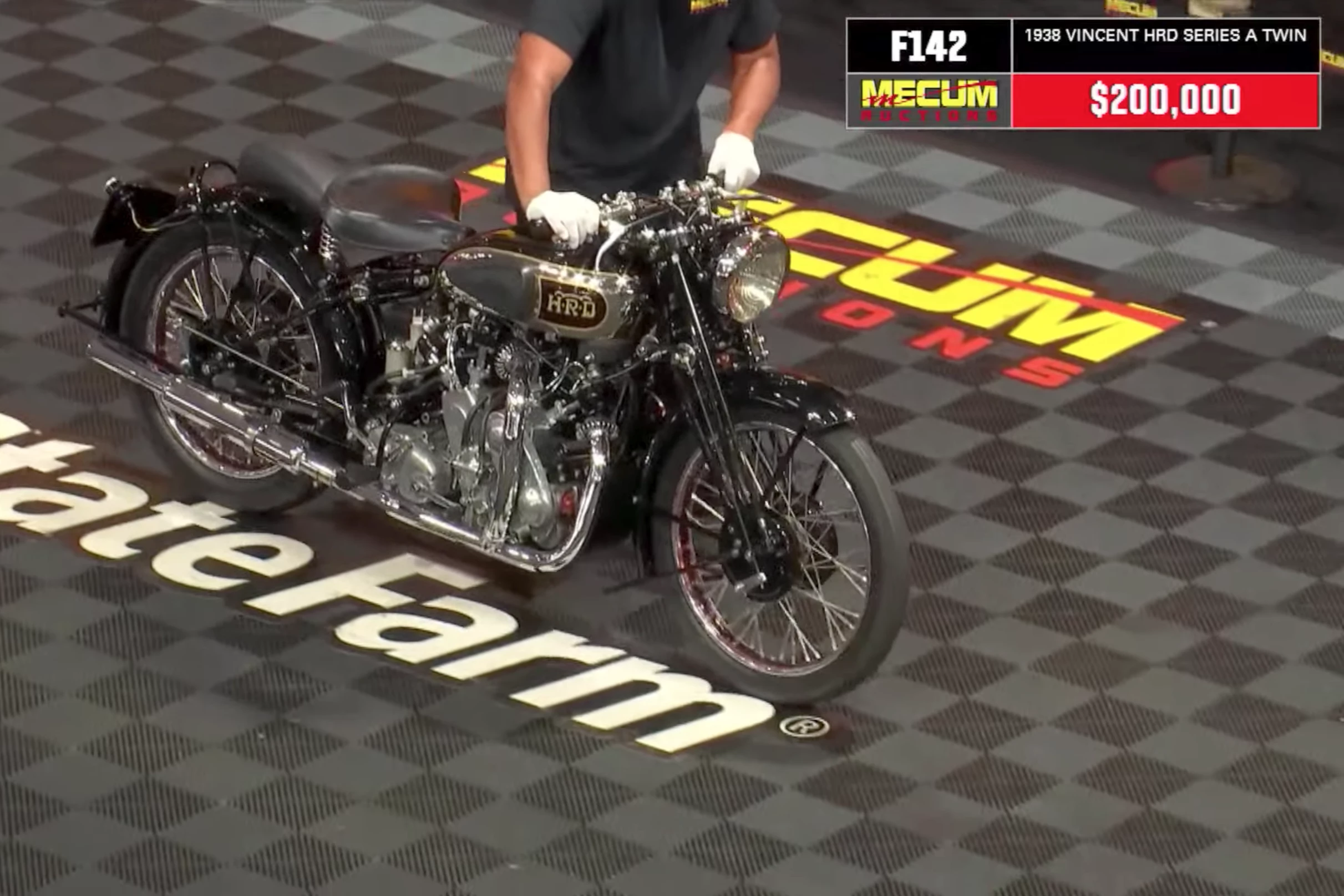 This 1938 Vincent HRD Series A Twin went to auction during Monterey Car Week with Mecum Auctions (Lot F142) on 13-August-2021 with an official estimate of $400,000 to $500,000 and was passed in after a high bid of $200,000 (Mecum)