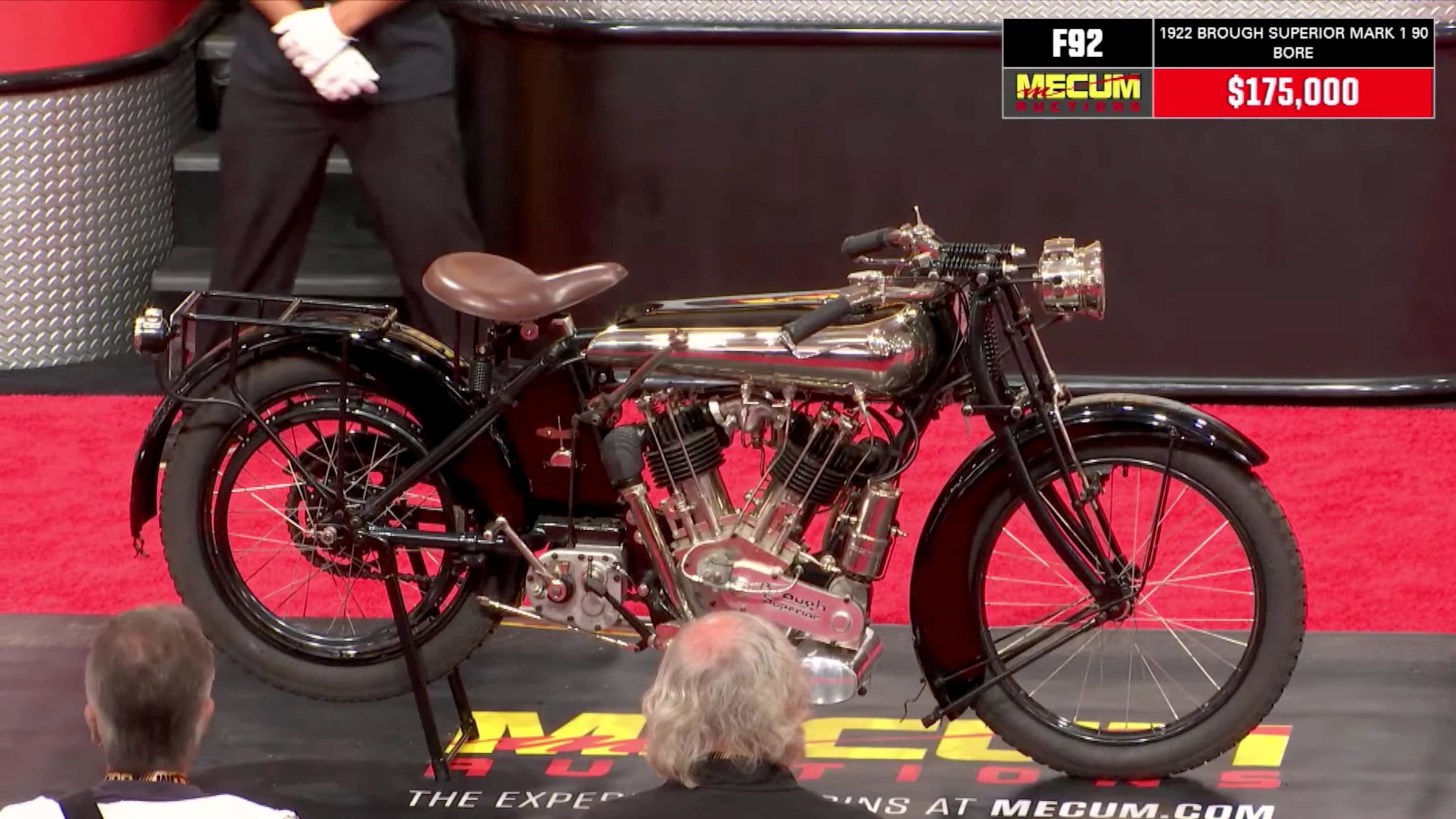 This 1922 Brough Superior Mark 1 90 Bore will go to auction during Monterey Car Week with Mecum Auctions (Lot F92) on 13-August-2021 with an official estimate of $275,000 to $350,000 and failed to meet reserve after a high bid of $250,000. (Mecum)