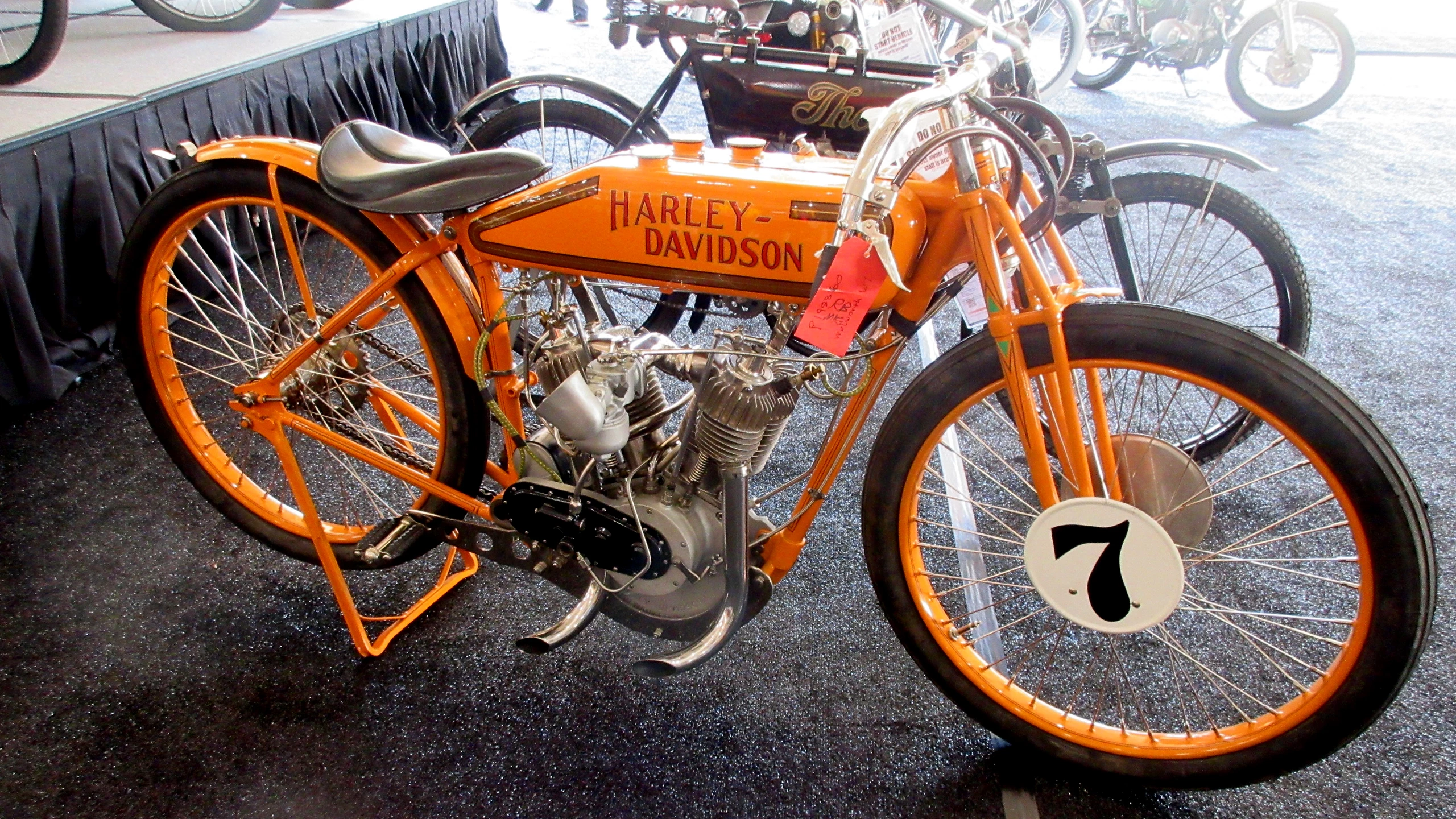 This 1914 Harley-Davidson Model 10-F went to auction during Monterey Car Week with Mecum Auctions (Lot F110) on 13-August-2021 with an official estimate of $75,000 to $90,000, selling for $101,200 including buyers premium (Mecum)